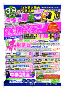 まるごと0円+7周年記念チラシ裏 | 学習塾 真学舎で志望校合格した。君もTOPを目指してみないか。