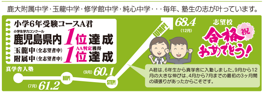 小6受験おめでとう | 学習塾 真学舎で志望校合格した。君もTOPを目指してみないか。