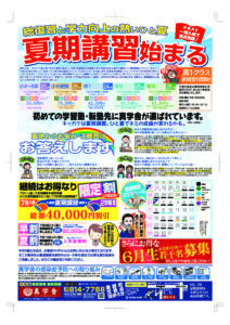 6月入学&夏期講習案内チラシ表 | 学習塾 真学舎で志望校合格した。君もTOPを目指してみないか。