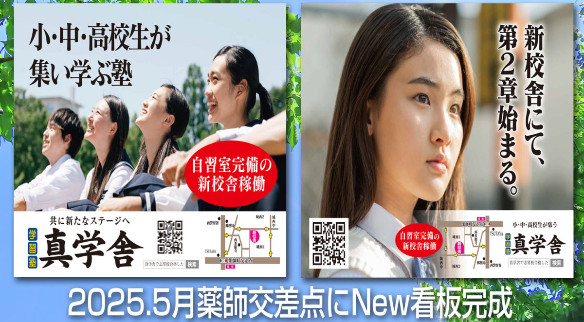 2025看板告知 | 学習塾 真学舎で志望校合格した。君もTOPを目指してみないか。