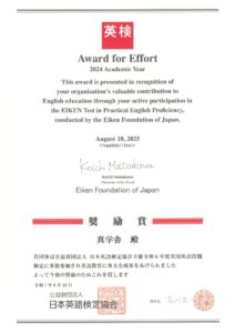 学習塾真学舎英検表彰状